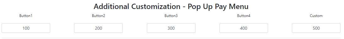 The default pay buttons are pre-filled as 100, 200, 300, 400 & the custom field is 500.